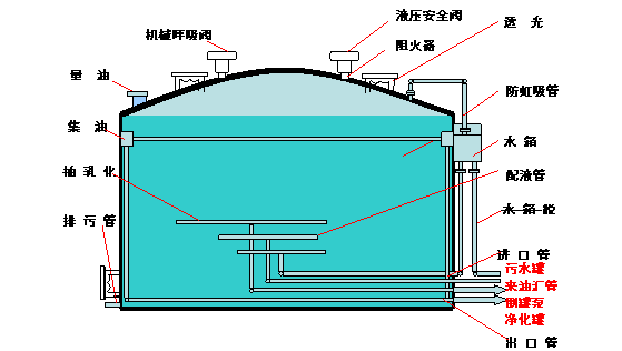 立式立式斜板(管)沉降除油罐結構形式與普通立式除油罐基本相同,主要區別是在普通除油罐中心反應筒的分離區加設了斜板組。含油污水從中心反應筒出來(lái)后,先在上部分離區進(jìn)行初步的重力分離,較大的油珠先分離出來(lái),然后污水通過(guò)斜板區,油水進(jìn)一步分離。分離后的污水在下部集水區流入集水管,匯集后的污水由中心柱上部流出除油罐。在斜板區分離出的油珠上浮到水面,進(jìn)入集油槽后由出油管排出到收油裝置。